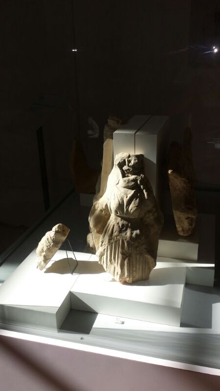 • Il Museo Civico Archeologico allestito nella Chiesa del S.S. Crocifisso, ubicata appena fuori il centro storico di Monte Rinaldo, raccoglie le decorazioni architettoniche fittili provenienti dal santuario. Infatti, come in altri luoghi di culto dell’area etrusco-italica, il porticato e il tempio erano rivestiti di elementi in terracotta che oltre a proteggere le travature lignee delle strutture architettoniche assumevano anche una funzione decorativa. Le terrecotte, per lo più a stampo con ritocchi a mano e policrome, si dividono in vari elementi relativi alla copertura degli architravi (lastra di rivestimento), ai rivestimenti degli spioventi (sima), ai rivestimenti delle testate delle travi e agli elementi terminali dell’ultimo coppo dello spiovente (antefissa) e alle decorazioni del frontone. Proprio quest’ultimo, nel tempio greco e in quello etrusco-italico, costituisce il coronamento della facciata ed ha la forma di un triangolo delimitato dagli spioventi del tetto e dalla trabeazione. In questo spazio vengono ospitate le statue dei gruppi frontonali che rappresentano le decorazioni principali del tempio e che illustrano temi mitologici legati al luogo di culto. Del tempio di Monte Rinaldo sono state rinvenute un numero imprecisato di teste, sia maschili che femminili, intere e incomplete, frammenti di panneggi e di membra, tra cui gambe e arti.